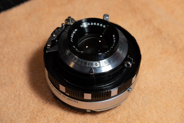 This is a Mamiya-Sekor 90mm f/3.5 lens for the Mamiya Press system. It's the standard kit lens for the Press cameras before the Universal and Super 23 were made. I bought this lens as a reference for a previous repair, I ended up resolving those issues and hadn't taken much time to look at this lens. This lens has some standard issues: The aperture blades are gummed up and wont move and the focus is VERY stiff (so stiff I had to put gloves on to get it back to infinity without cutting my hands).