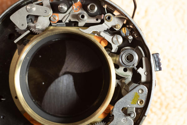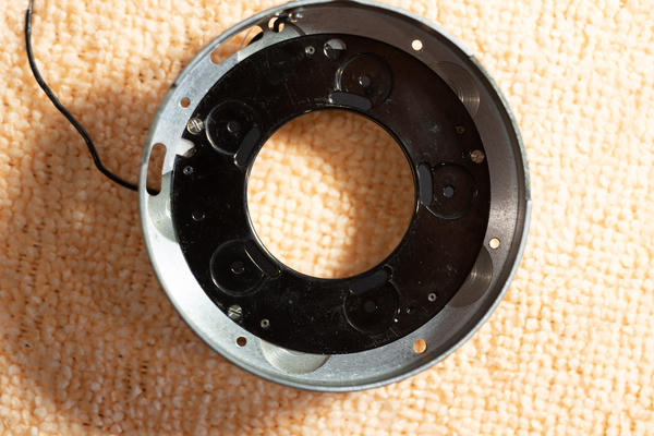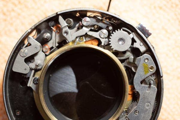 In order to disassembly the shutter the first step is to remove the lock ring that holds the top of the shutter all together. There is a small set screw that locks the ring that must be removed first (warning it is very small). After that the ring can be removed. The cover plate, and shutter timing set ring, and the control ring are all just set in place on top of this. Remove each one and note how it was put in. While there is only one way to put it back together, studying this a little will help when it comes time to put it back together.